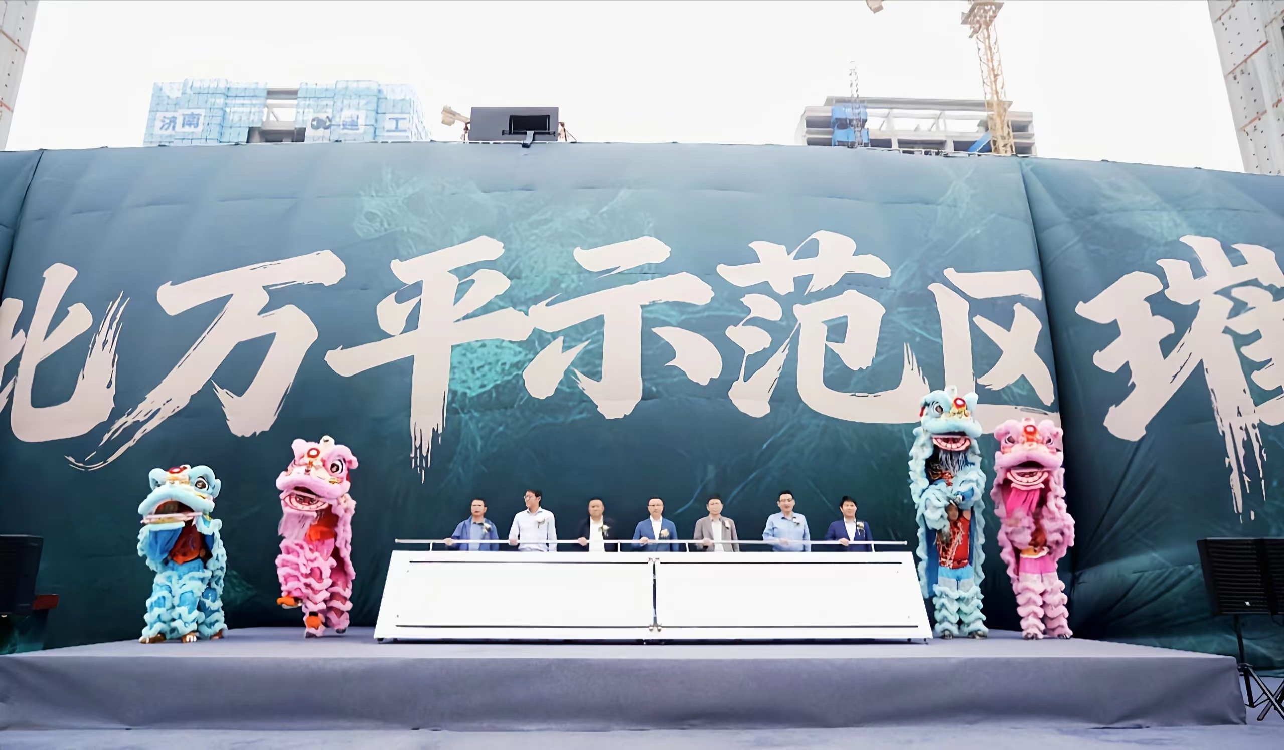 十點(diǎn)十分,祥瑞舞獅躍動(dòng)登場(chǎng),昂揚(yáng)騰挪間,為項(xiàng)目注入吉祥寓意與勃勃生機(jī),將現(xiàn)場(chǎng)氛圍推向高潮。接著,在全場(chǎng)嘉賓的矚目與倒數(shù)聲中,張總攜手多位領(lǐng)導(dǎo)共同推動(dòng)啟動(dòng)桿,舞臺(tái)吸幕瞬間升起,金海瑞園恢弘的大門豁然眼前,萬(wàn)平園林示范區(qū)的勝景也在此刻全景呈現(xiàn),引來(lái)陣陣贊嘆。同時(shí),舞獅吐青,卷軸鋪展,“責(zé)任國(guó)企,品質(zhì)筑家;瑞境天成,盛啟非凡”十六字宣言熠熠生輝,標(biāo)志著金海瑞園萬(wàn)平園林示范區(qū)正式華彩綻放。最后,各位領(lǐng)導(dǎo)在舞臺(tái)上合影留念,定格這一意義非凡的瞬間。